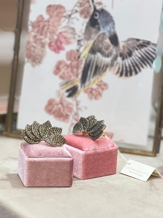 Orecchini Fly Pavé – argento dorato & zirconi oro antico (Codice: OE AP 001)