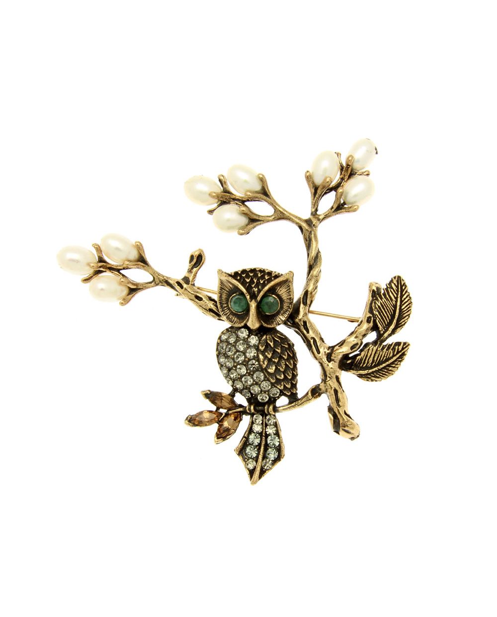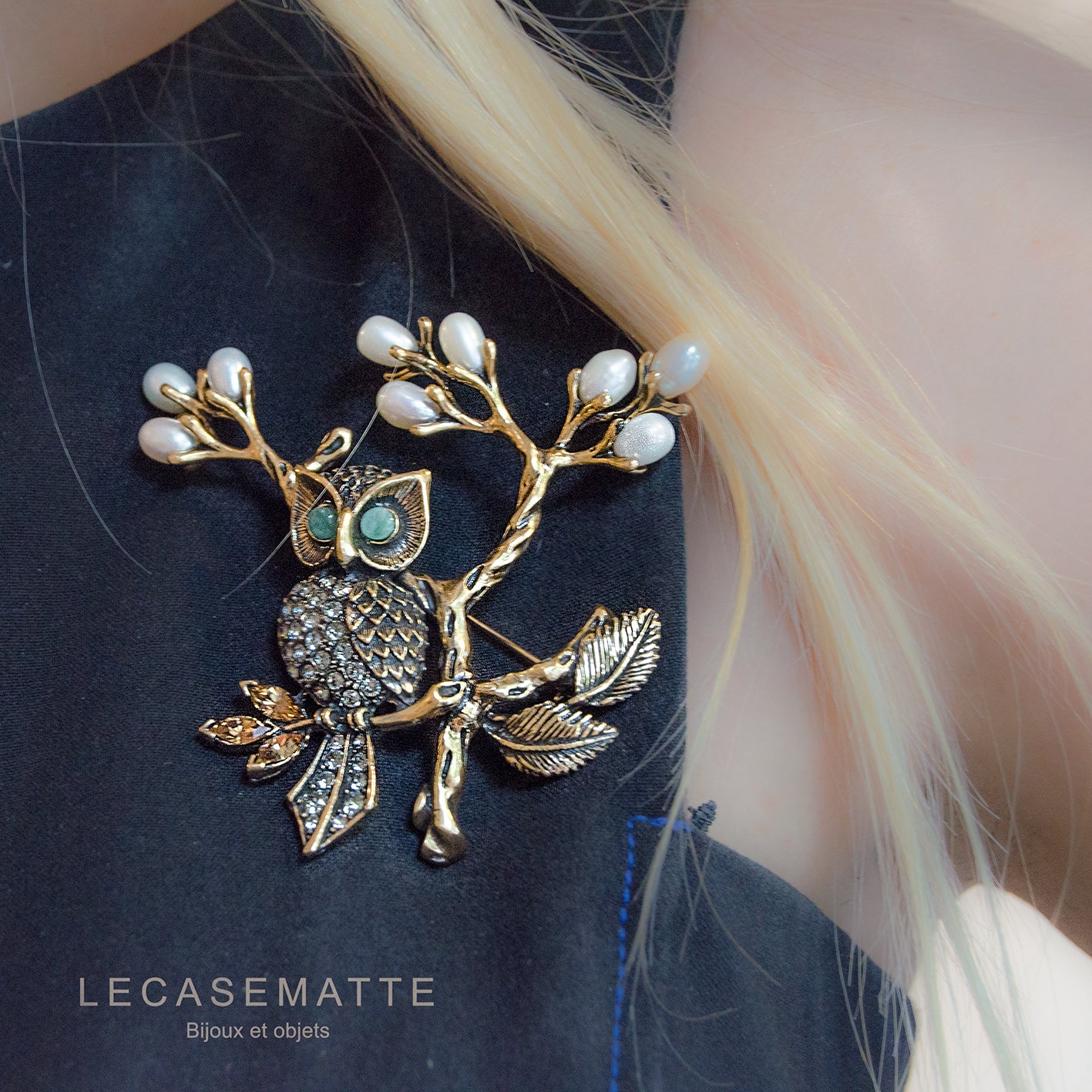 La spilla Fortuna della linea Gufo è una creazione unica che incarna simbolismo e lusso. Realizzata in ottone dorato, presenta un gufo decorato con strass e smeraldi, posato su un ramo-scultura arricchito da gemme di perle. Questo gioiello, frutto della maestria artigianale, è un emblema di fortuna e saggezza, con un design che richiama la bellezza naturale e il fascino dei dettagli preziosi. Creata con la tradizionale tecnica della cera persa, un antico metodo scultoreo che risale a oltre 5.000 anni fa, questa spilla è un capolavoro di eleganza.